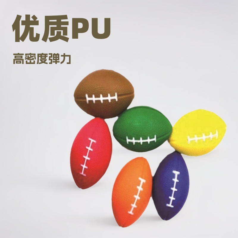 现货PU颗粒橄榄球70MM常规玩具款彩色光面压力弹力球益智炫彩