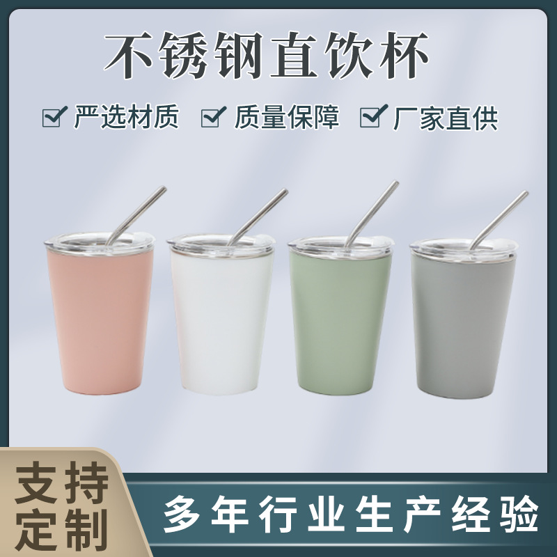 304不锈钢直饮杯高颜值吸管水杯便携随身咖啡杯车载350ML马克杯子
