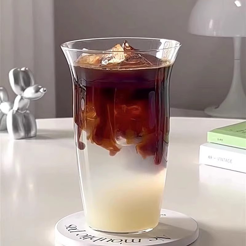 ins风敞口杯简约轻薄款透明玻璃杯拿铁咖啡杯冷饮杯果汁杯饮品杯