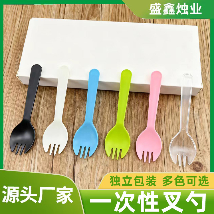 一次性塑料叉勺独立包装外卖勺子摆摊用叉勺甜品蛋糕叉加厚叉勺