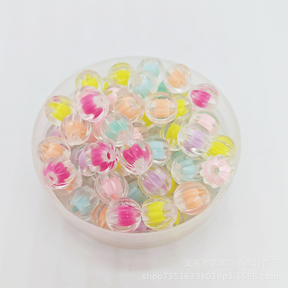 亚克力透明内彩珠中珠10MM南瓜珠 DIY手工串珠材料项链手链配件