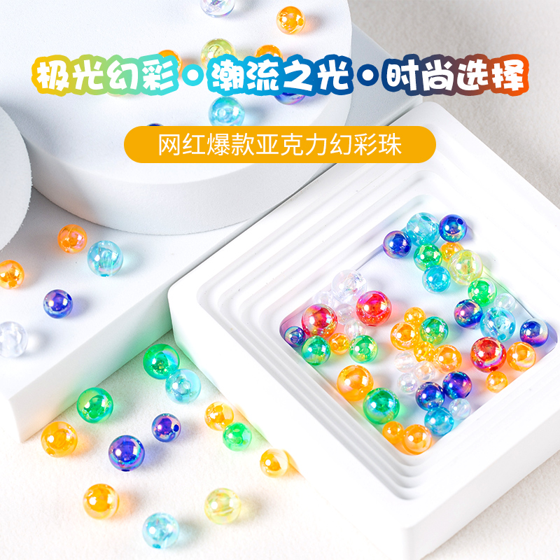 彩色亚克力幻彩珠子散珠透明AB彩珠手工diy串珠手链饰品配件材料