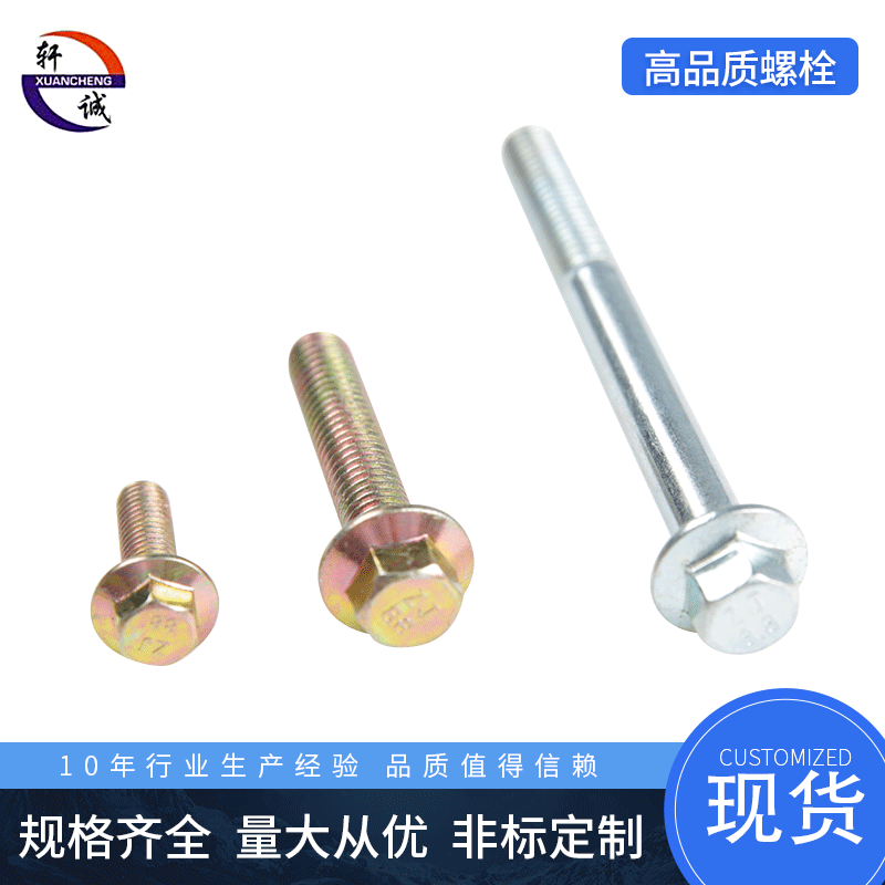 供应六角法兰面螺栓GB5787/GB5789/Q185 8/10级螺栓规格工艺齐全