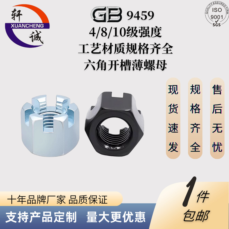 GB6181高强度8/10级薄型六角开槽螺母 工艺规格齐全 支持来图