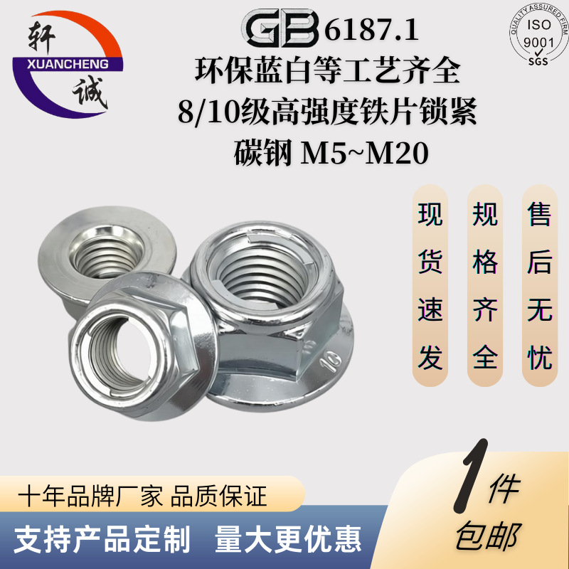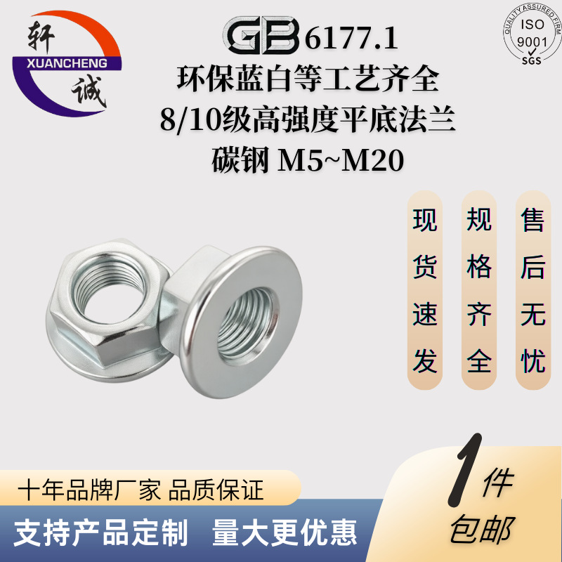 DIN6923/GB6177法兰螺母 4/8/10级六角法兰面螺母 规格工艺齐全