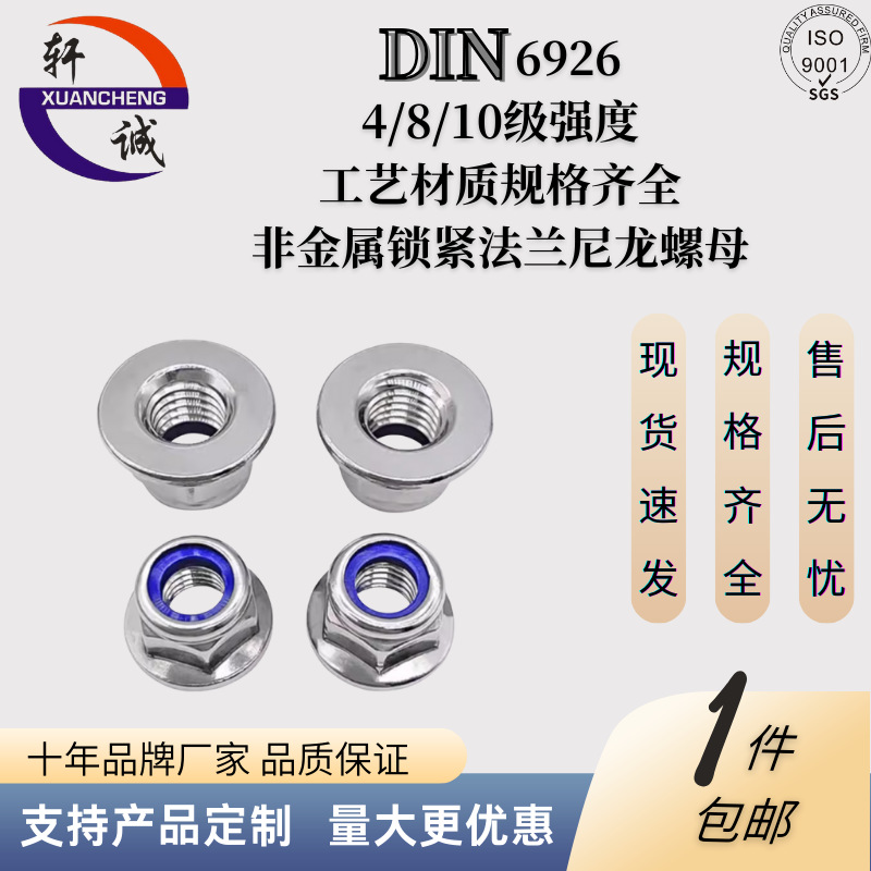 DIN6926 非金属六角法兰锁紧螺母厂家现货供应 法兰尼龙锁紧螺母