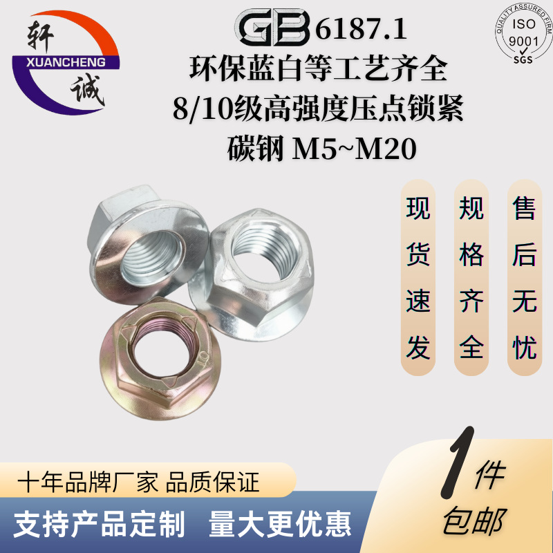 GB6187 全金属六角法兰面压点锁紧螺母 粗细牙均可 工艺规格齐全