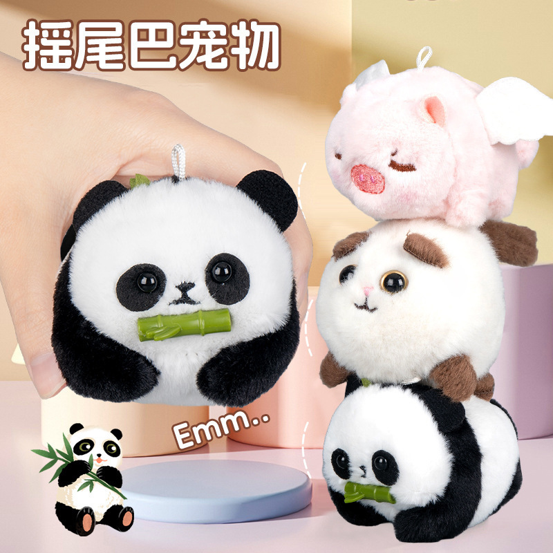 网红公仔拉线摇尾巴小猫咪毛绒玩偶拉绳小熊猫挂件饰品定制批发