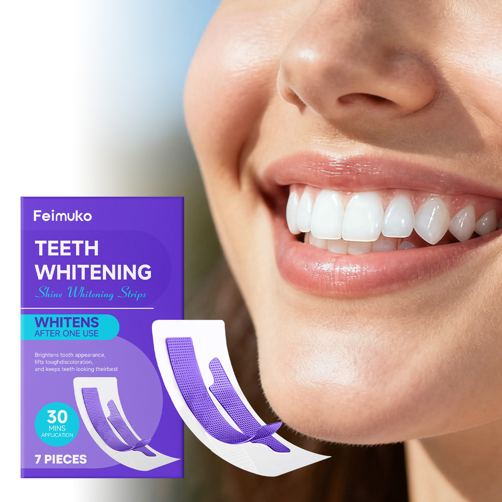 Feimuko紫色清洁牙贴 温和清洁牙齿牙垢呵护亮泽牙齿日常便携护理