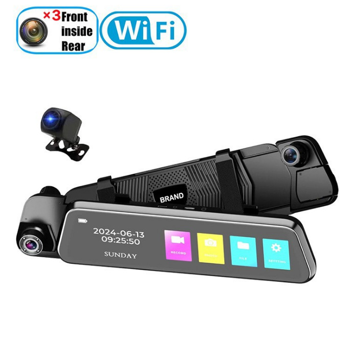跨境1080p三录WIFI全屏流媒体10寸行车记录仪高清触摸车内监控DVR