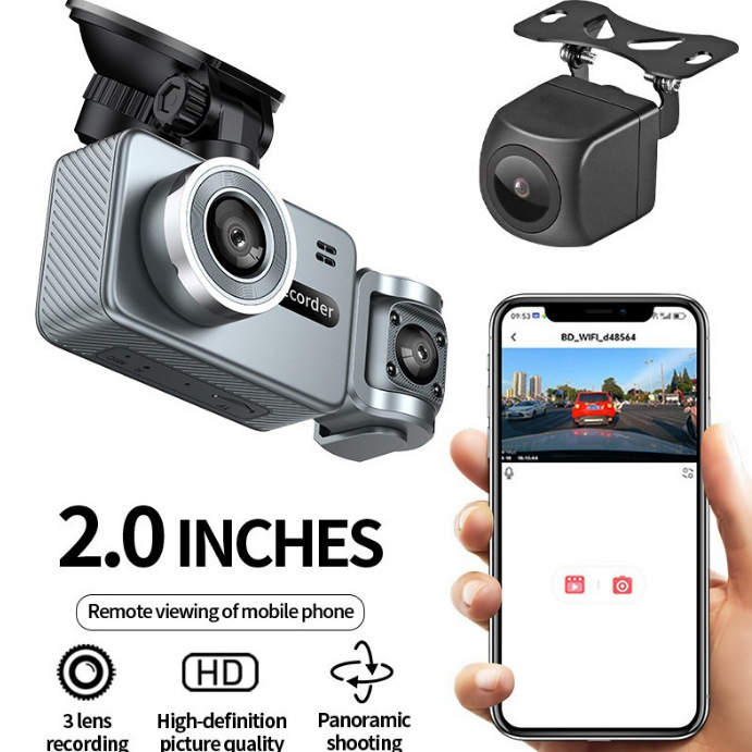 3寸屏行车记录仪3路高清1080P带WIFI三镜头停车监控带夜视车载DVR