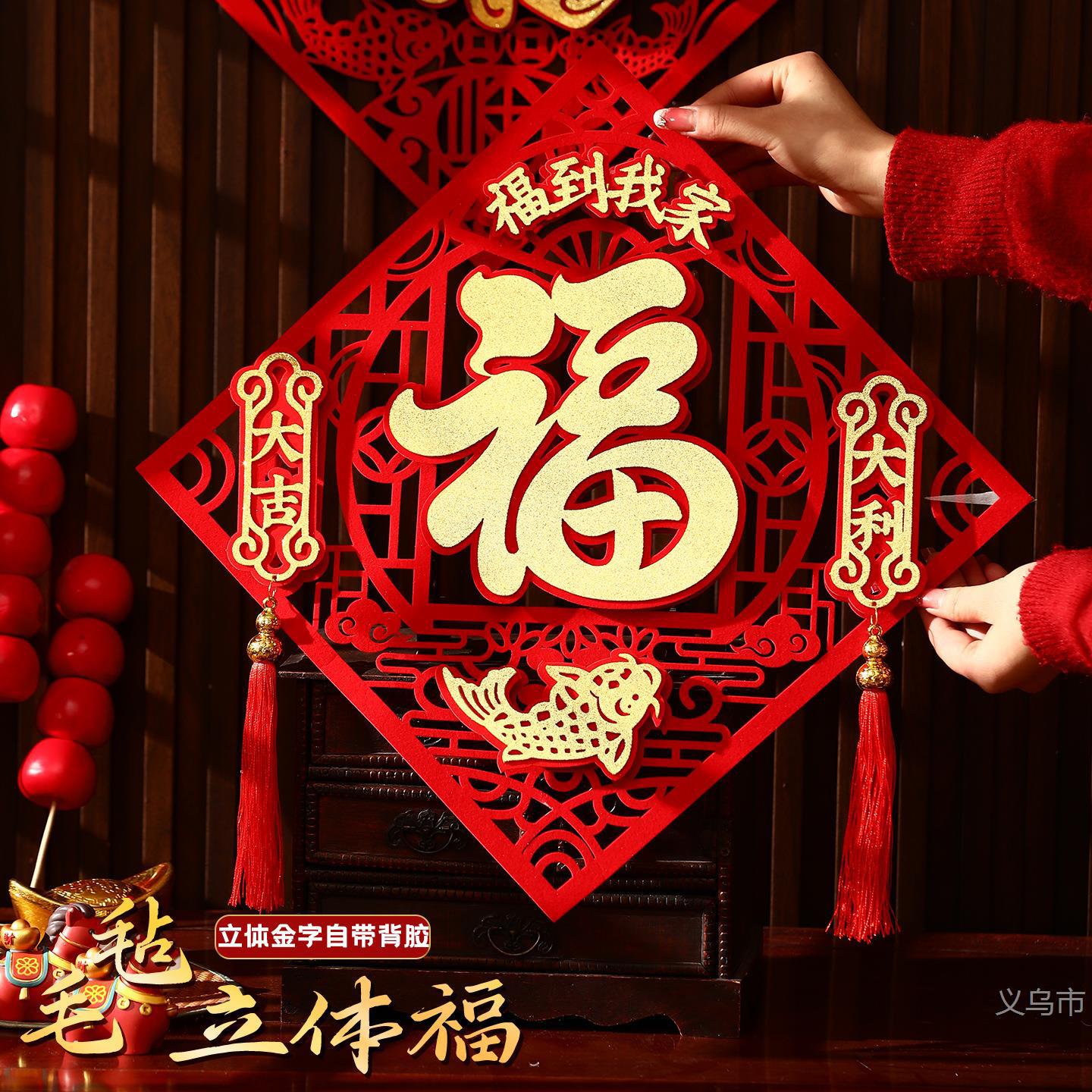 2026新款马年镂空流苏门贴新年入户门双层毛毡福字贴装饰春雨哈哈