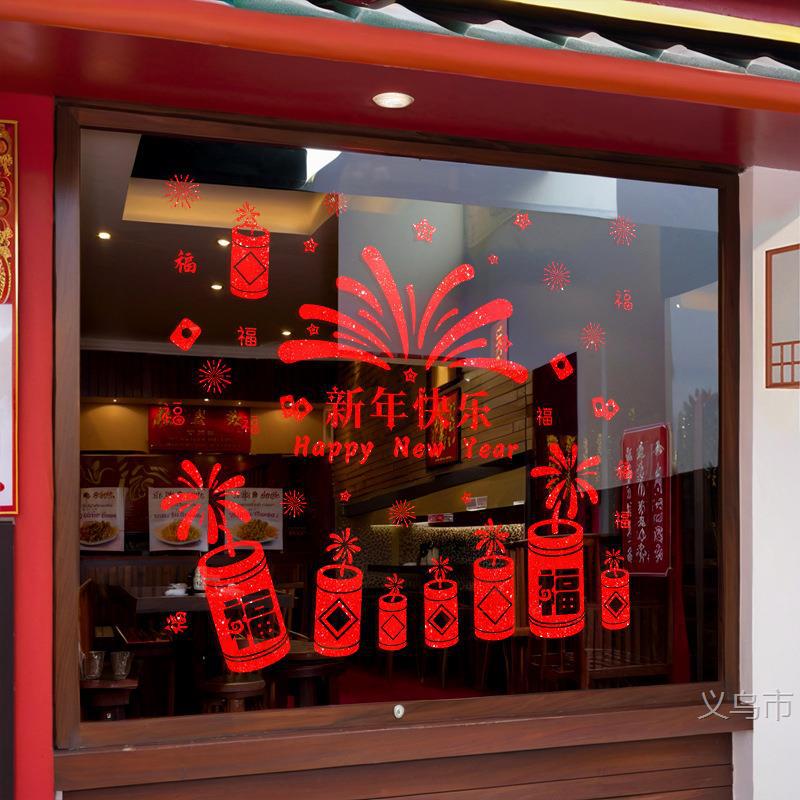 2026马年商场店铺橱窗氛围布置元旦春节装饰炫彩贴纸happynewyear
