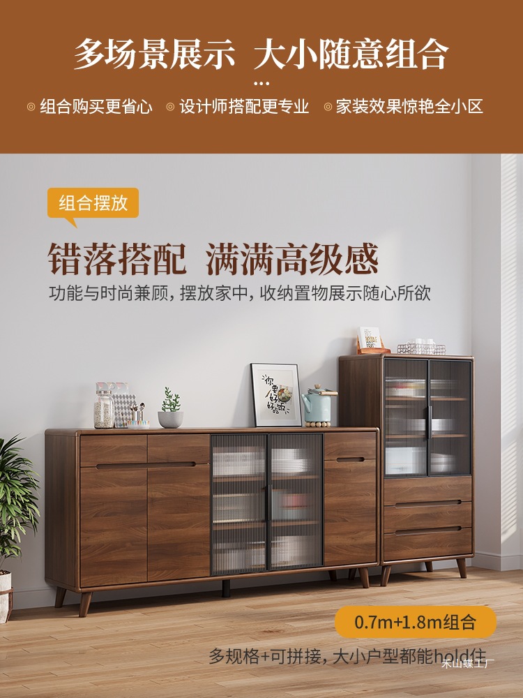 实木框餐边柜现代简约客厅酒柜茶水柜厨房储物柜橱柜收纳一体靠墙