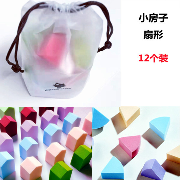 16个装 小房子扇形粉扑 糖果块三角型美妆蛋 彩妆蛋 袋装