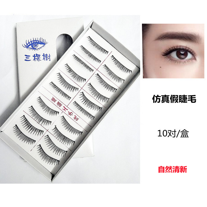 三棵树假睫毛 整盒10对 自然 纤长 交叉 仿真假睫毛 现货