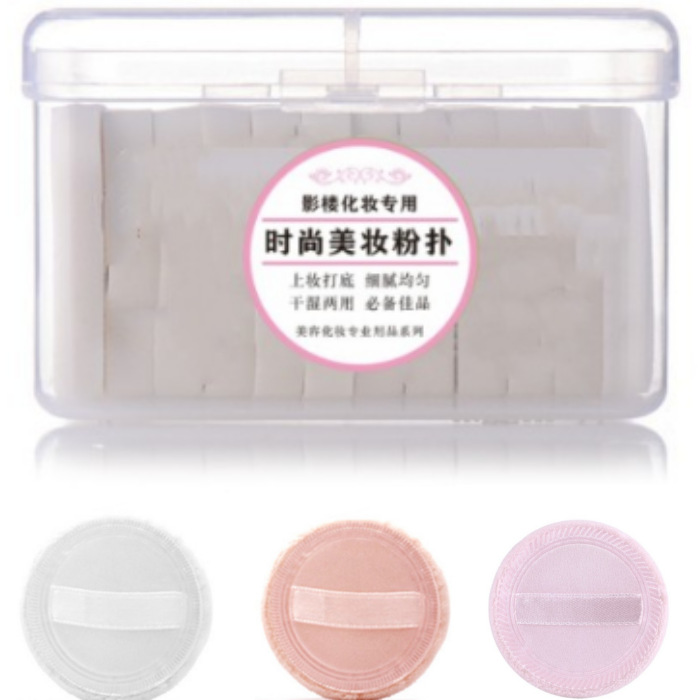 散粉扑 袋装 12片盒装 丝绒植绒丝带定妆干粉扑 化妆棉粉扑
