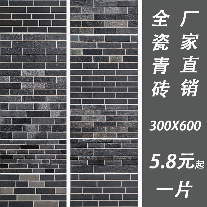 全瓷砖古建仿古小青砖复古文化砖青砖片墙砖300X600别墅外墙瓷砖