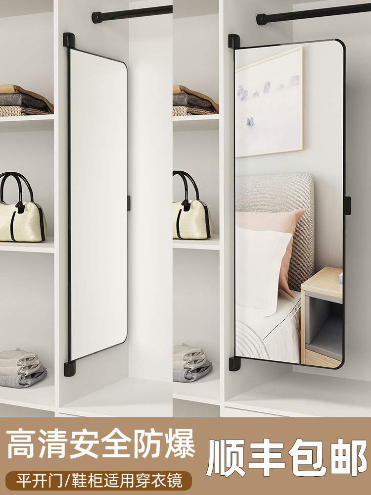 衣柜镜子内装隐形旋转平开门对开门衣橱全身试衣镜折叠穿衣镜内置