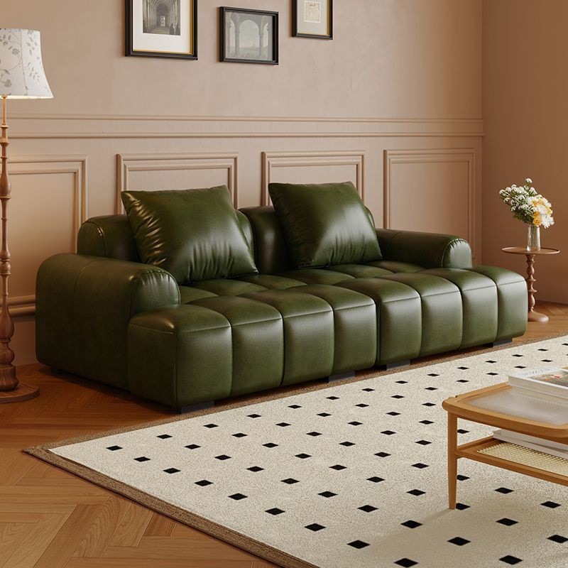 复古风猫抓油蜡皮泡芙沙发客厅家用小户型公寓直排美式方块沙发