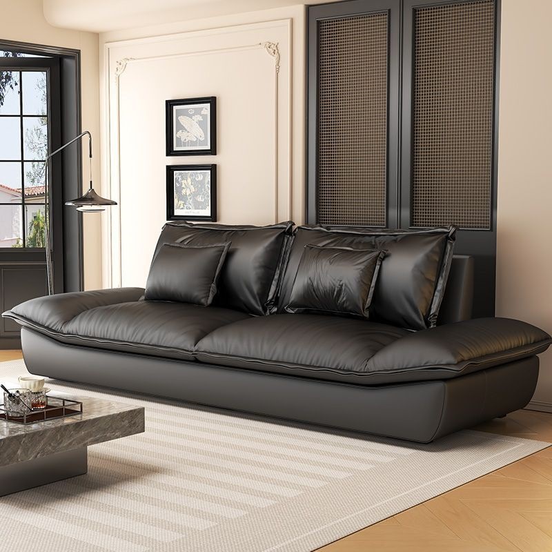 2025年款意式轻奢帆船宽大坐深猫抓皮直排极简小户型客厅黑色沙发