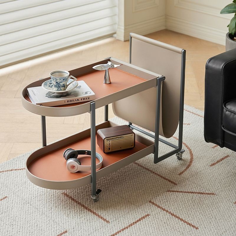 网红马鞍皮沙发边几客厅阳台可移动置物架设计感推车小户型茶角几
