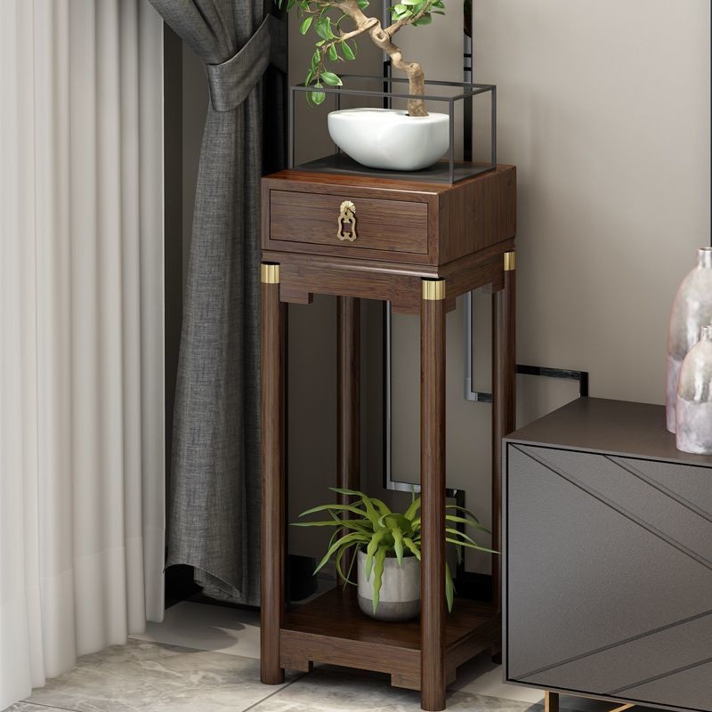 新中式沙发边几角几边柜轻奢小茶几竹制轻奢花架置物架阳台花架子