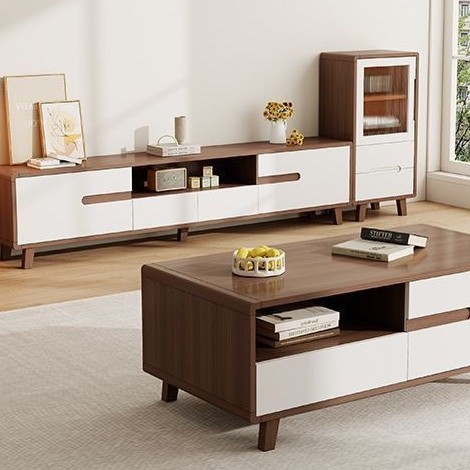 新款电视柜茶几组合套装小户型客厅家用现代简约落地胡桃色轻奢柜