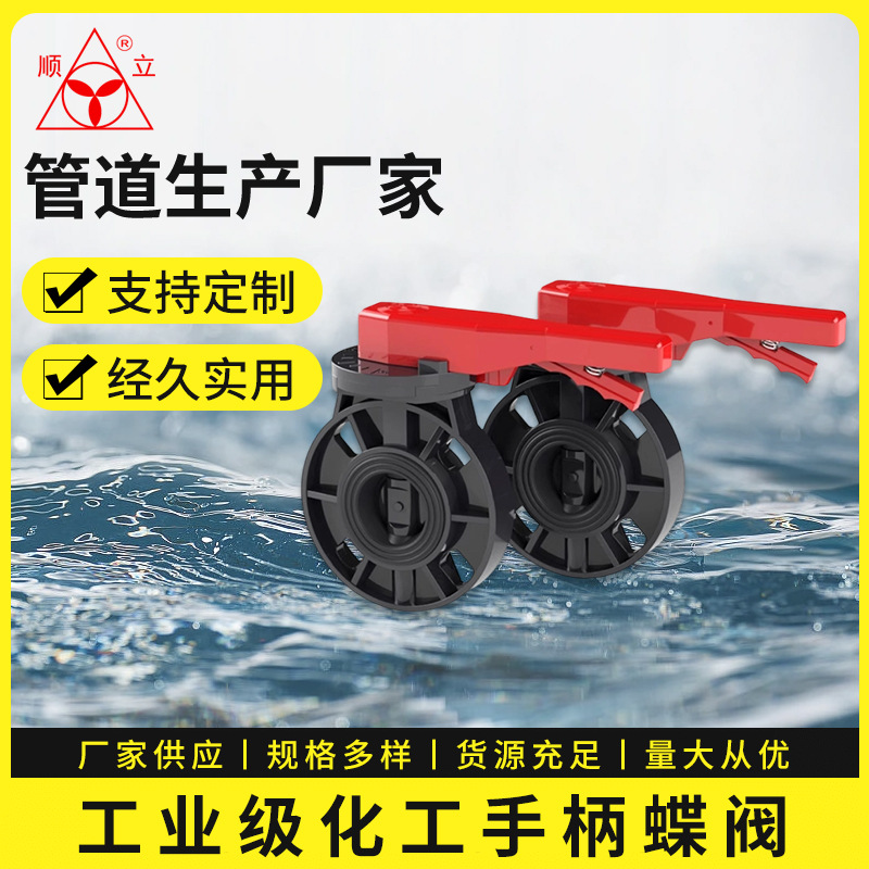 化工手柄蝶阀PVC涡轮式手柄蝶阀开关对夹式管道阀门工业管道配件