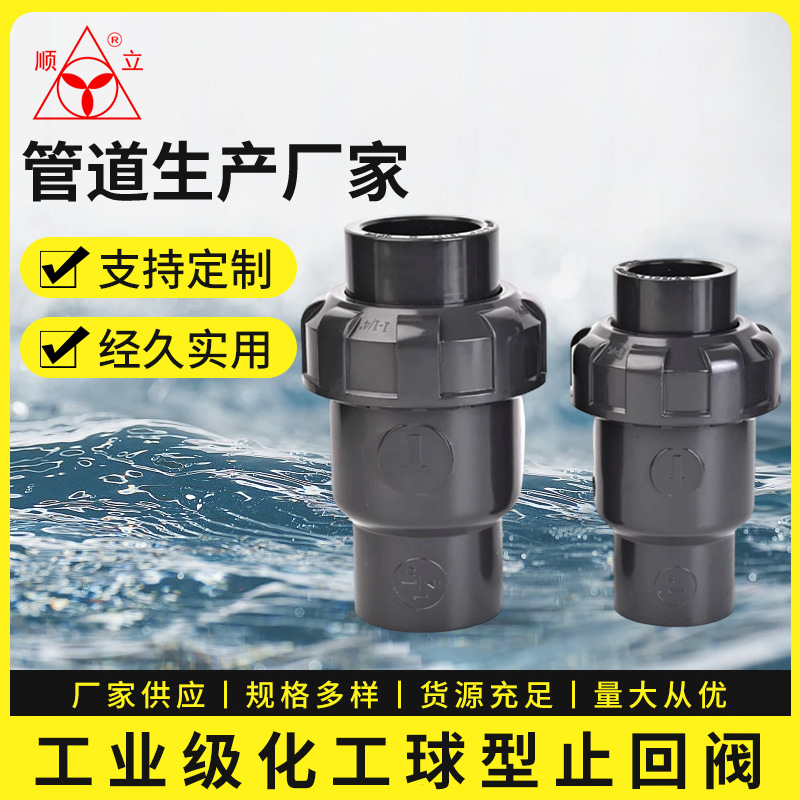 化工球型止回阀水管配件水管立式逆止中间阀工业PVC管件配件批发