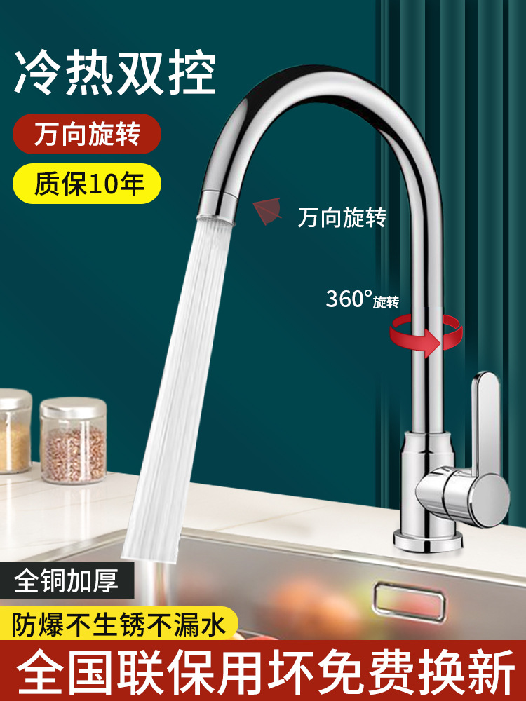 全铜厨房水龙头冷热家用水槽洗菜洗手盆洗碗池旋转304不锈钢龙头