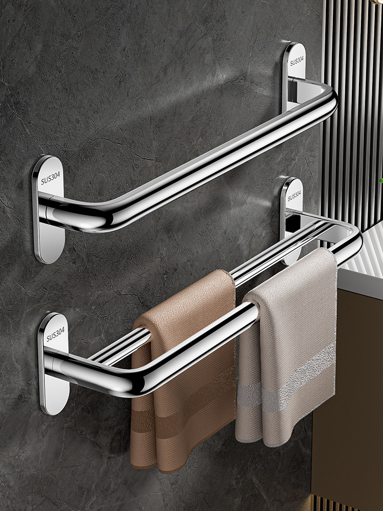 毛巾架304不锈钢单杆卫生间毛巾杆免打孔浴室厕所晾浴巾双杆挂架