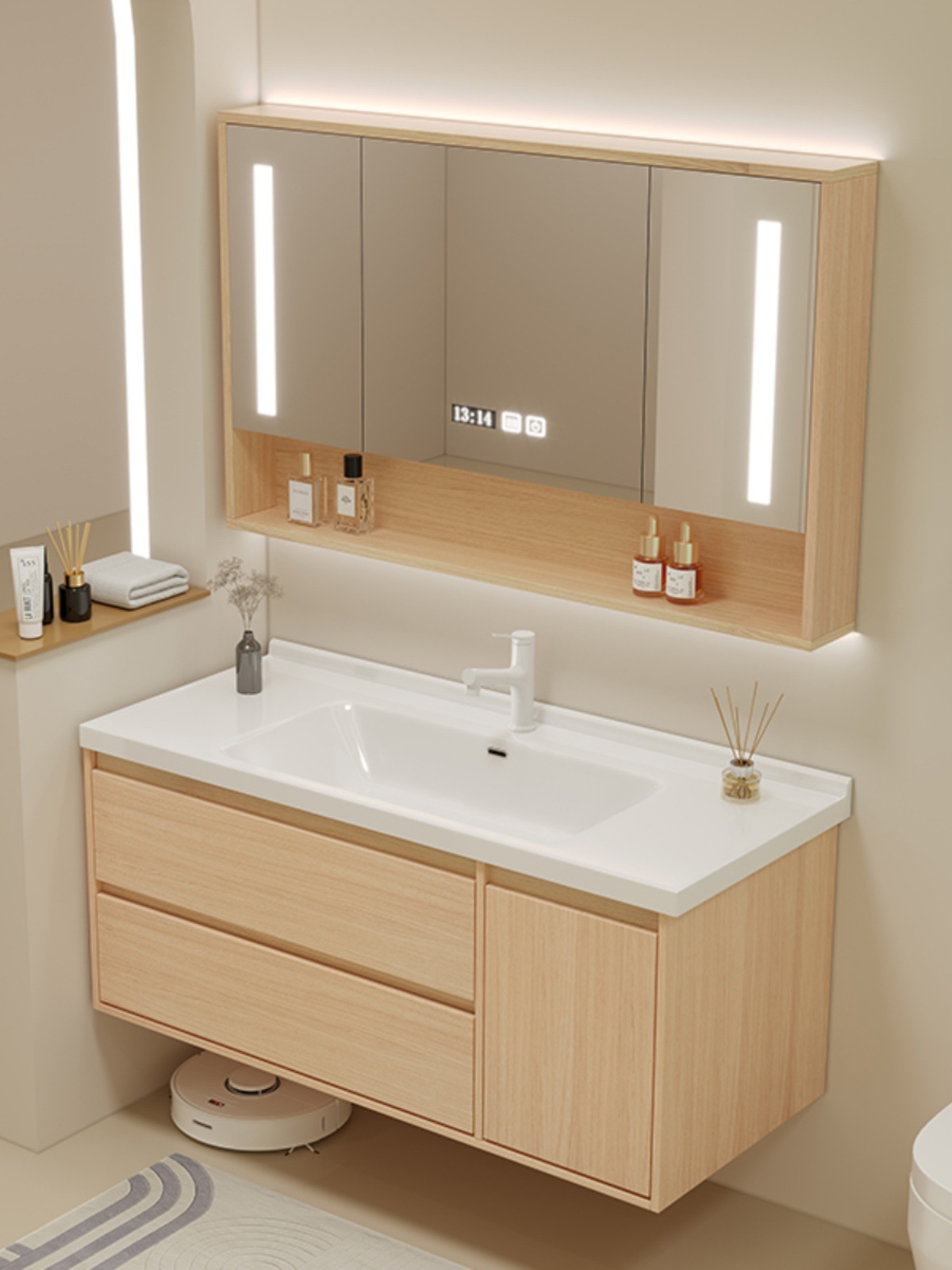 原木色浴室柜现代简约智能洗脸盆柜组合陶瓷一体洗漱台卫浴柜组合