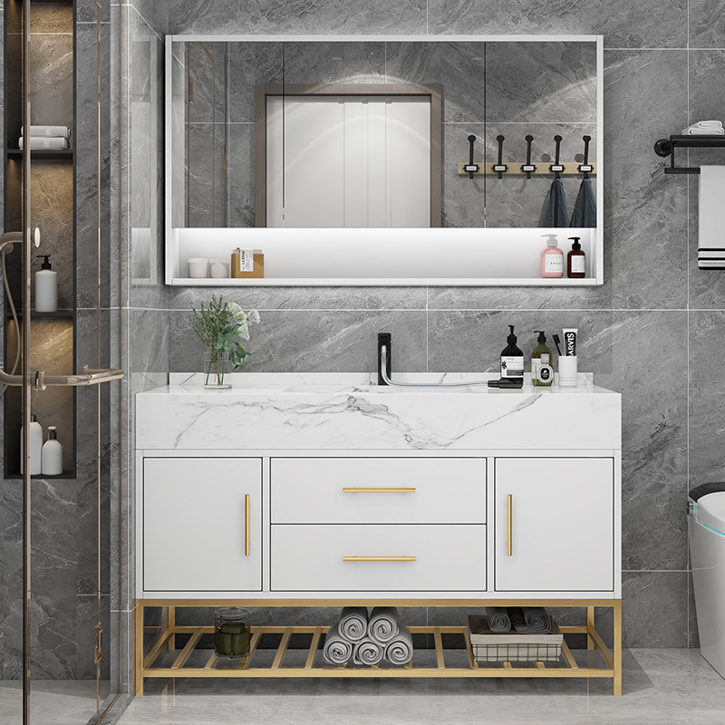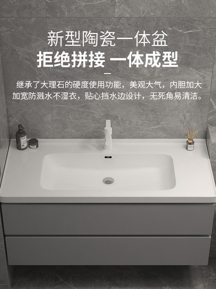轻奢浴室柜组合岩板下挂实木智能卫生间洗漱台洗手洗脸盆柜落地