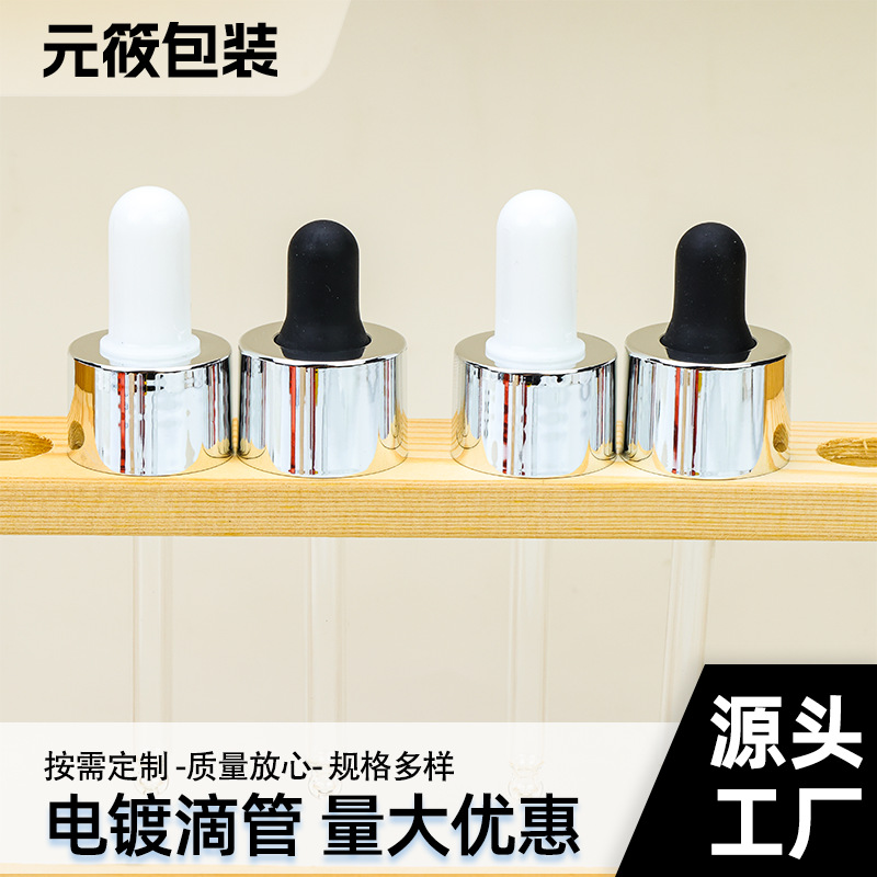 厂家销售 24牙电镀拉丝电化铝盖子滴管盖化妆品瓶精油胶头滴管