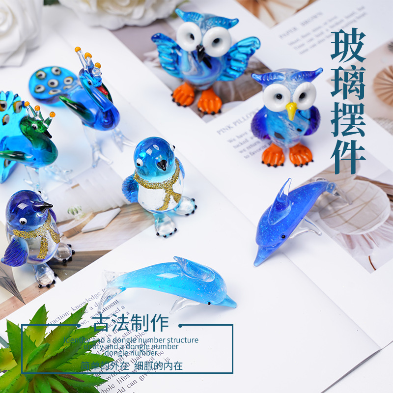 厂家现货 创意可爱动物摆件 小海豚孔雀玻璃工艺品 动物琉璃摆件