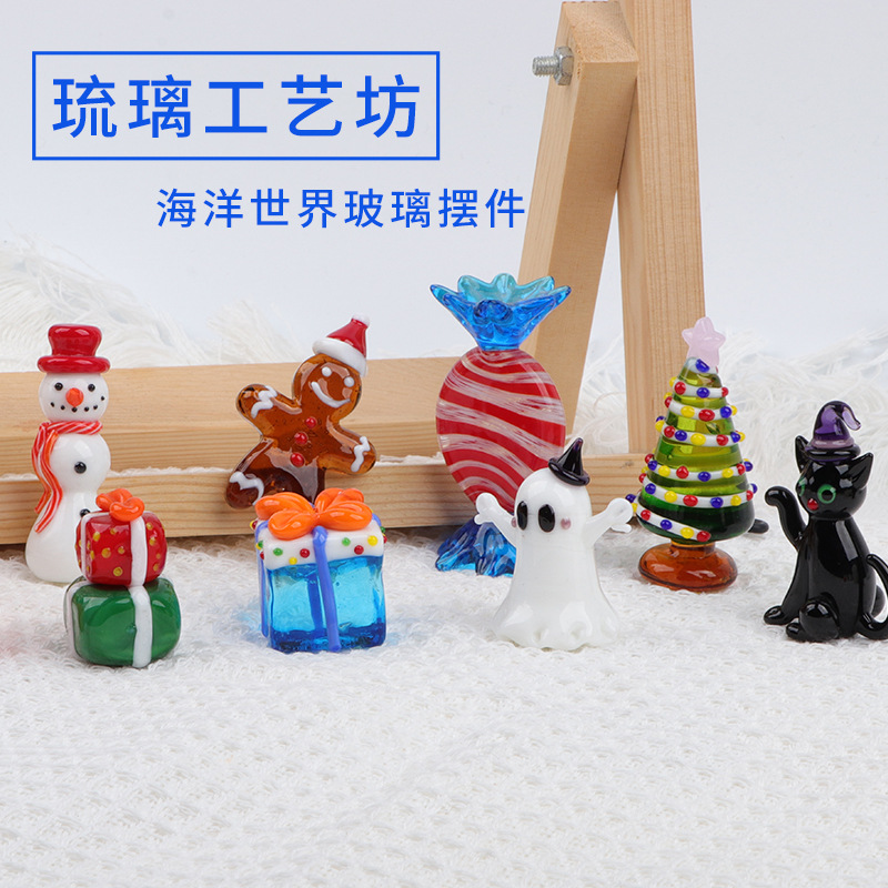圣诞玻璃摆件 创意桌面玻璃摆饰 客厅书桌可爱彩色动物摆件