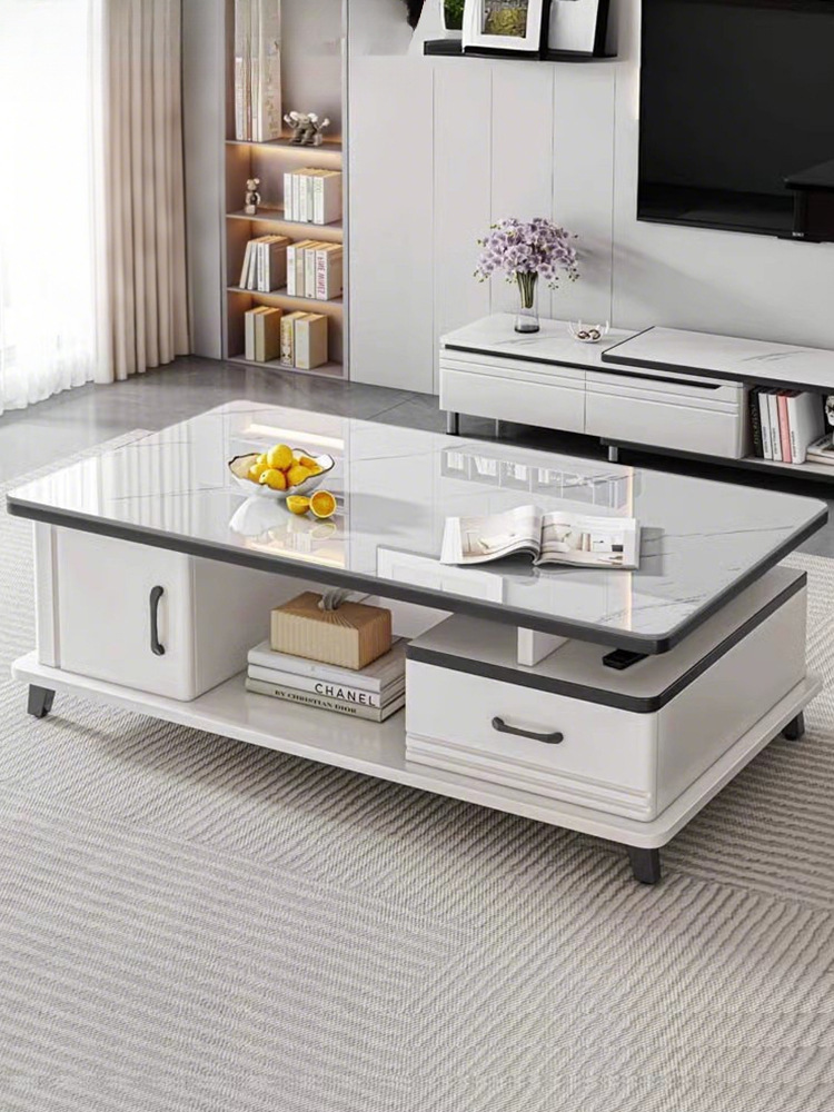 意式轻奢极简岩板茶几现代小户型客厅家用茶玻茶桌大小圆茶几组合