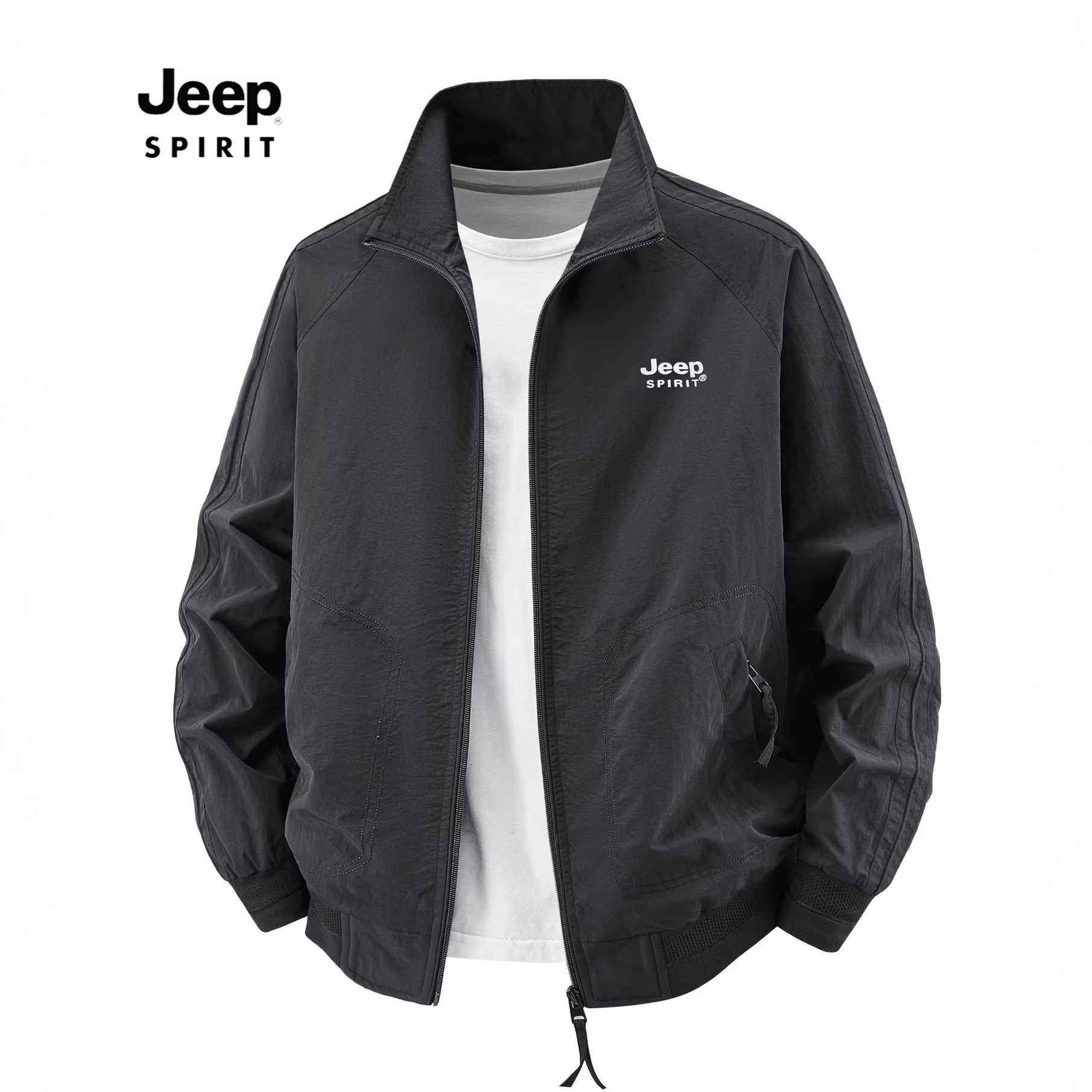 JEEP SPIRIT吉普夹克男春秋季外套纯色立领商务百搭宽松休闲服