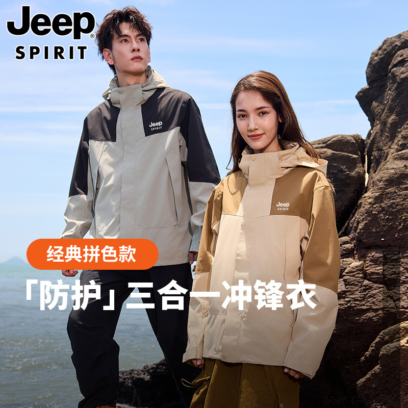 JEEP SPIRIT冲锋衣外套男女三合一可拆卸高级情侣夹克女登山服男