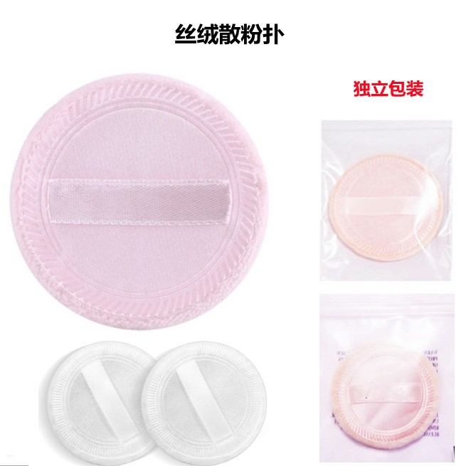 散粉扑12片袋装 植绒纯棉丝带粉扑 定妆干粉扑 6CM 厂家
