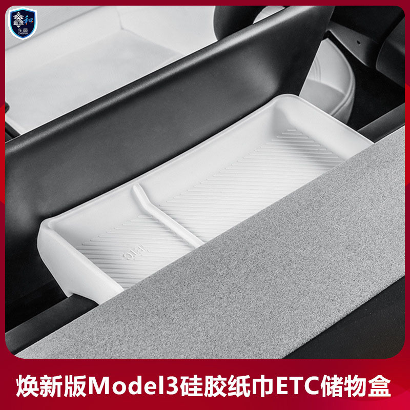 适用特斯拉焕新model3隐藏硅胶收纳置物盒车用屏幕ETC储物盒