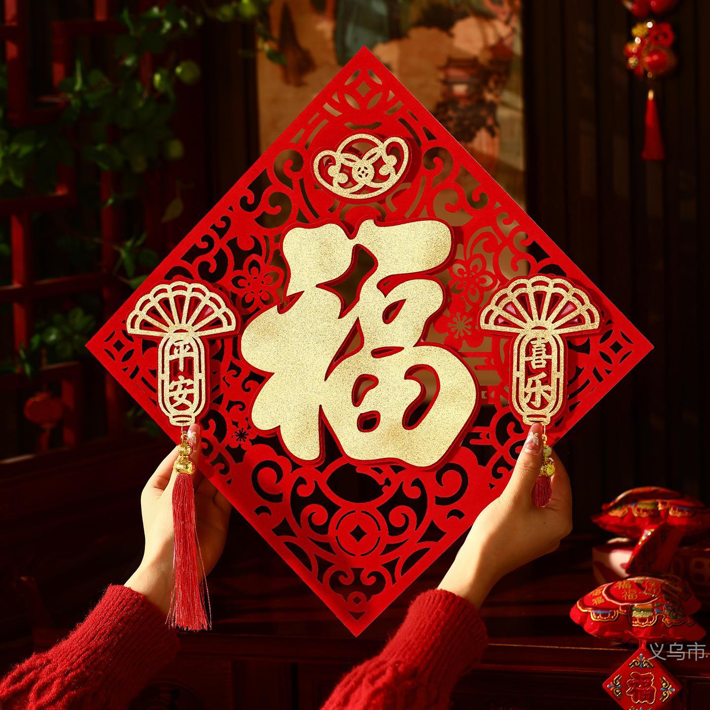 2026新款马年新年入户门双层毛毡福字贴镂空流苏福字装饰春雨哈哈
