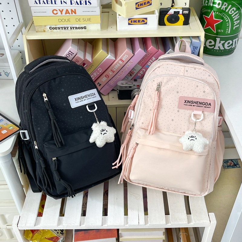 新款高颜值书包男女生初高中生可爱甜美星星背包轻便大容量双肩包