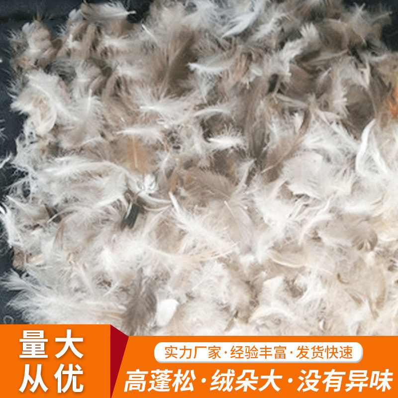 厂家供应 番鸭毛绒片 羽绒服手感番鸭毛 抱枕坐垫填充物