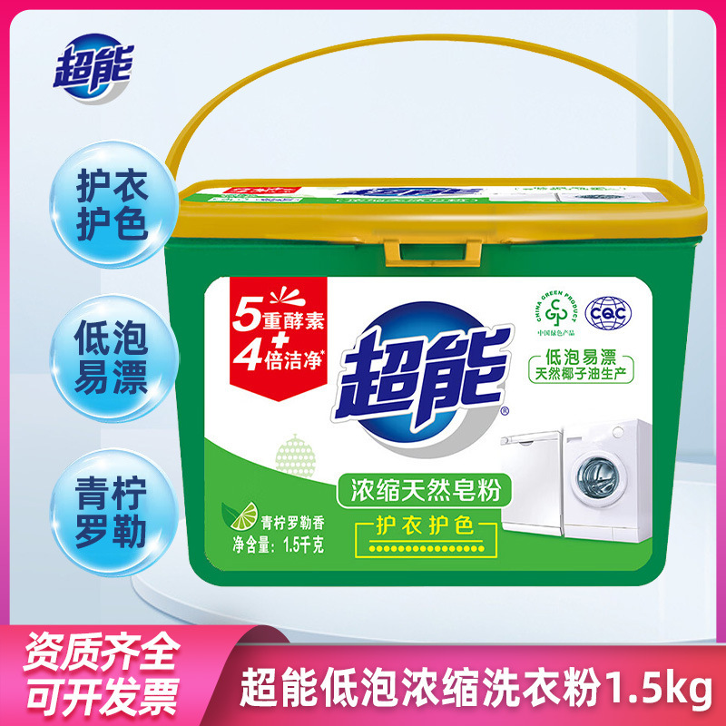 超能低泡浓缩洗衣粉1.5kg盒装4倍洁净力洗衣服粉家用实惠装整箱批