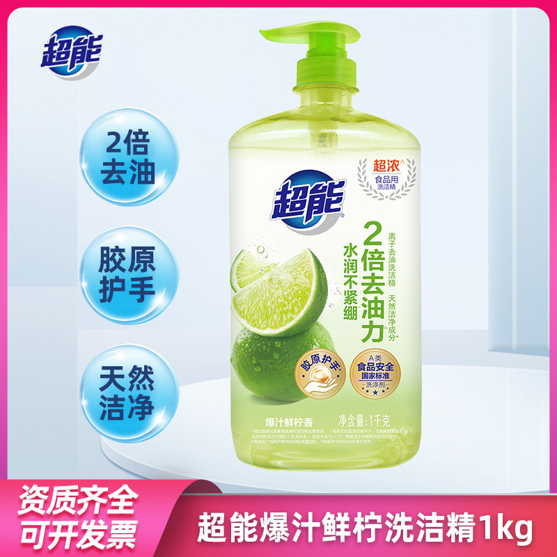 超能柠檬护手洗洁精1kg洗涤剂洗碗液 快速去油污家用实惠整箱量批