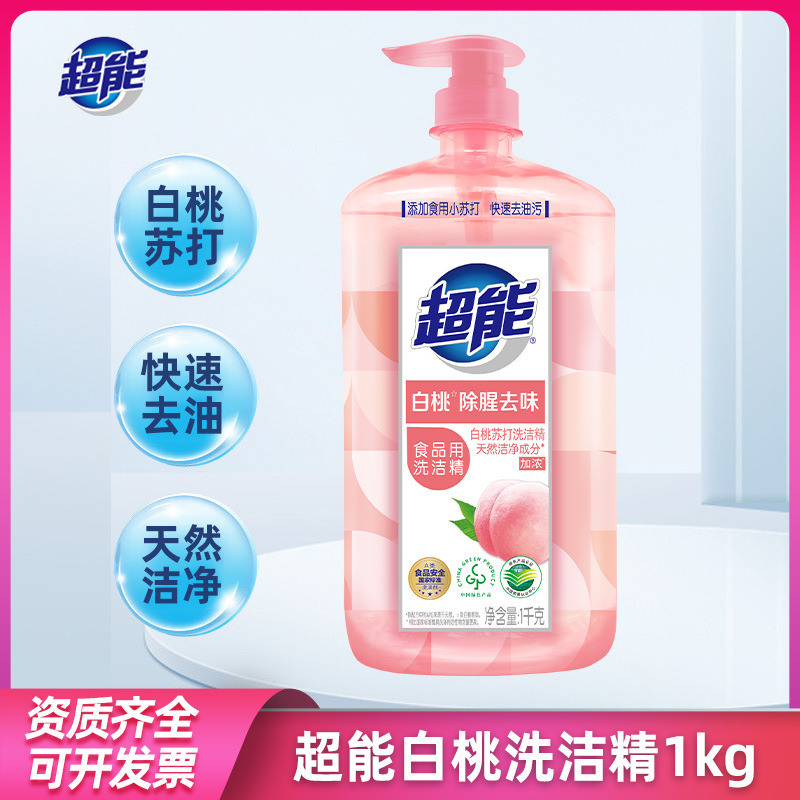 超能洗洁精白桃清新袪味大桶家用洗碗快速去油污洁净洗碗液食品用