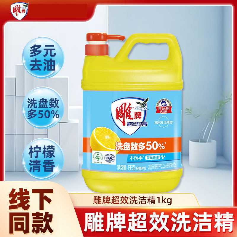 雕牌洗洁精超效洗碗液1kg瓶易冲洗去油无残留果蔬洗涤灵整箱量批