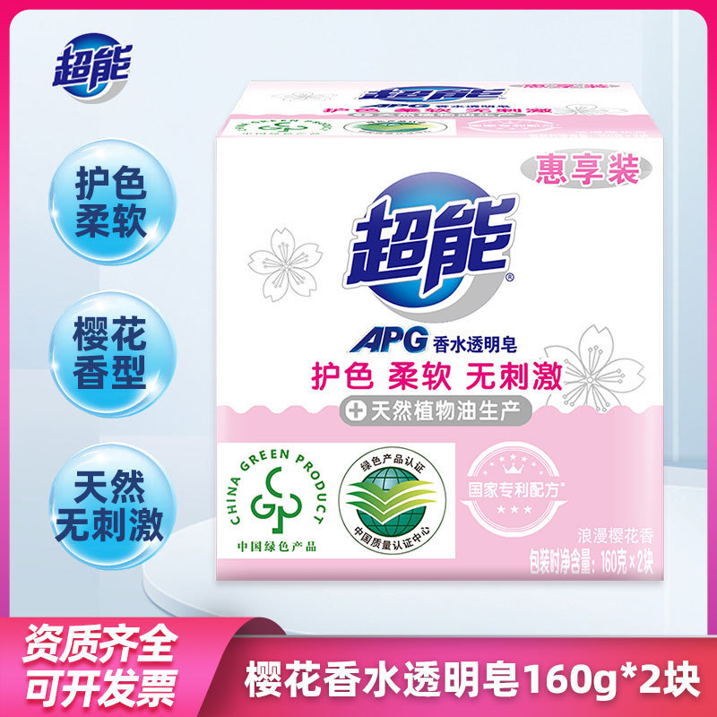 超能香水透明皂160g*2块樱花植沐悦色香肥皂家用实惠装家庭装去渍